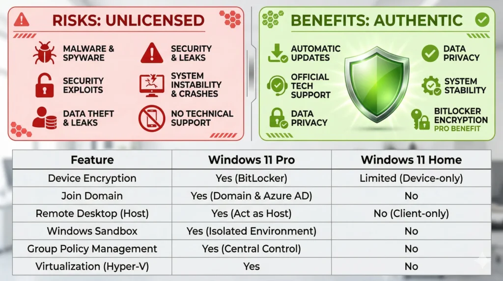 Price Comparison: Original vs. Unofficial Windows 11 Licenses