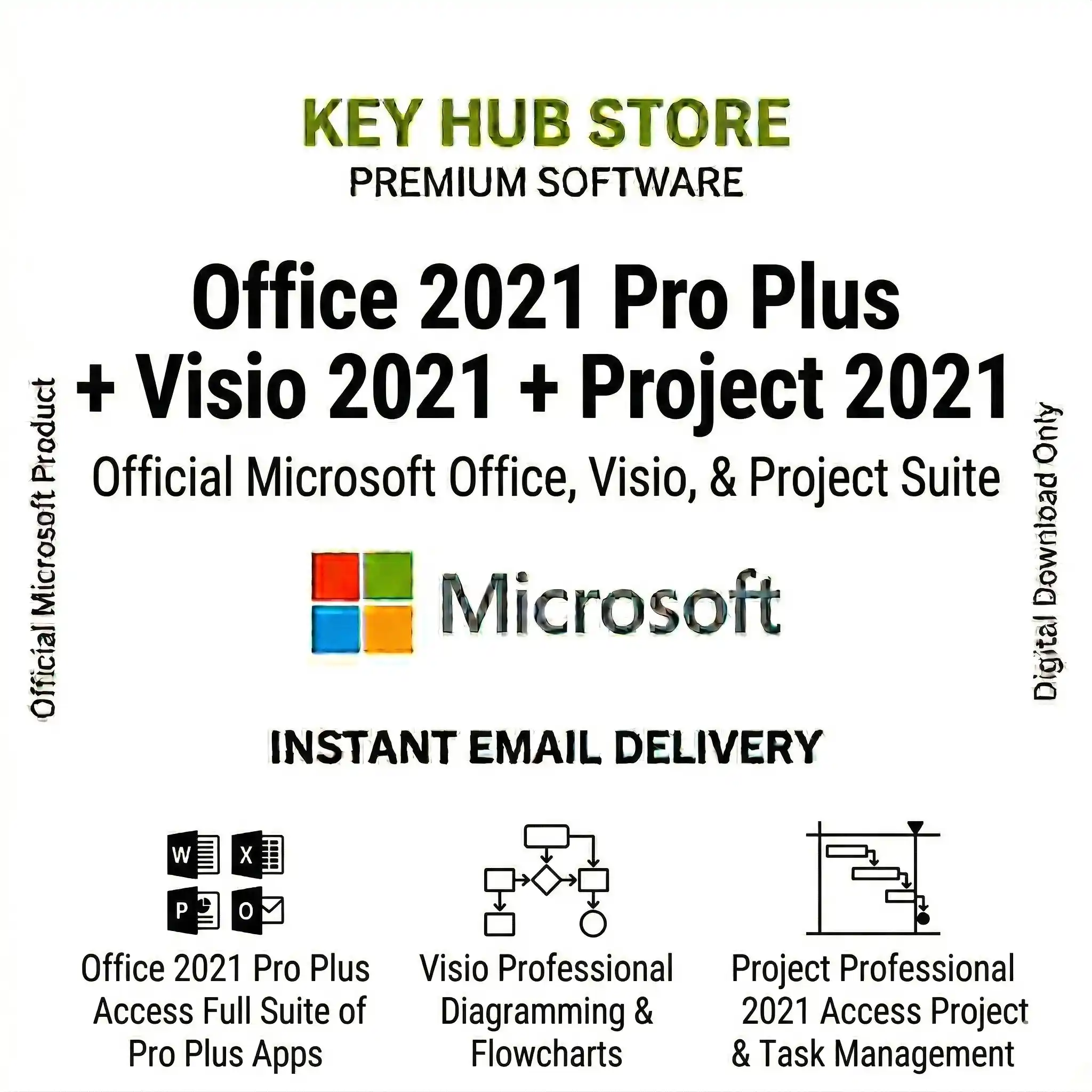 Upgrade your digital experience with Office 2021 Pro Plus + Visio 2021 + Project 2021. At Key Hub Store, we provide 100% genuine digital licenses delivered instantly to your email. Whether you are upgrading your home PC, outfitting a business, or securing your data, this product provides the premium features and security you need.